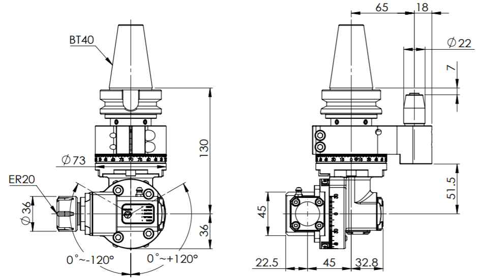 ◎?BT40-ER20 Light Angle Head-Universal (AHL Type)
